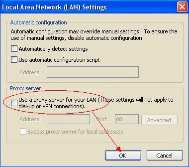 "Proxy server" checkbox is marked with a check, click it to